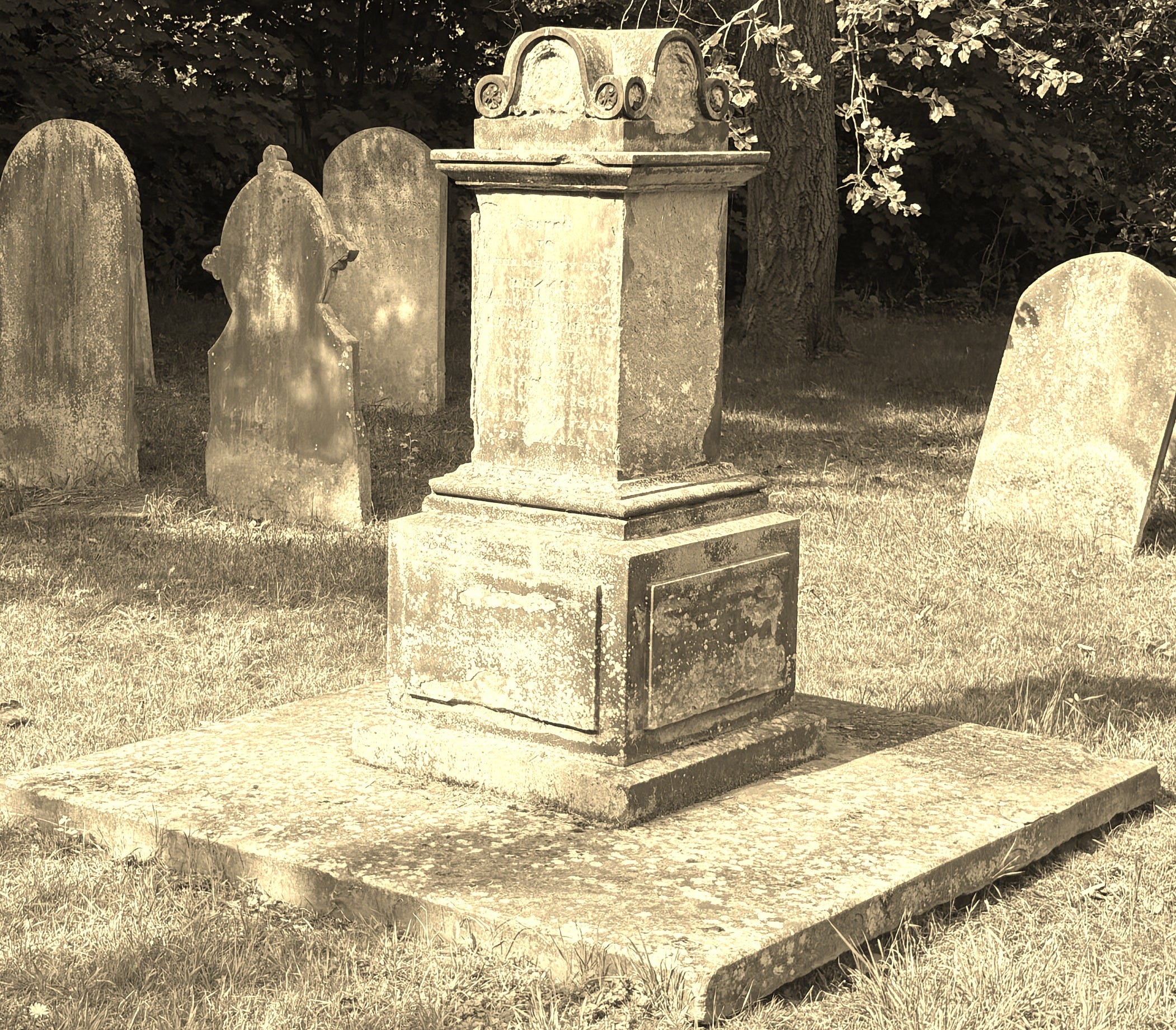 The lettering softened by weather,parts missing will soon be unreadable.